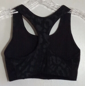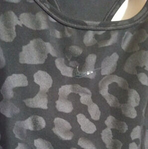Nike swoosh black and gray animal print racerback sports bra women's size small. Excellent pre-owned condition with no flaws noted.
