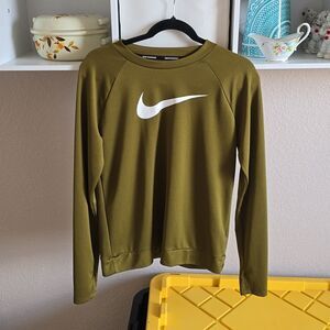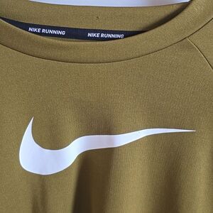 Nike swoosh logo LS Dri Fit Shirt Green "running" - tag hole