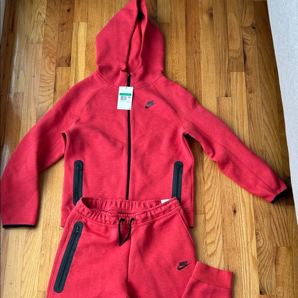 Red and black Kids Nike tech jogging suit new with tags