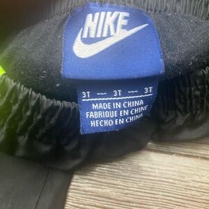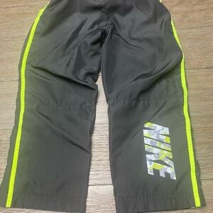 Nike warmup boy pants black green stripe and logo. Windbreaker pants size 3T