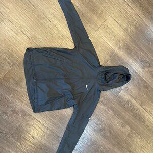black, lightweight, sporty, ripstop, athletic, hooded, water-resistant, minimalist, running, casual