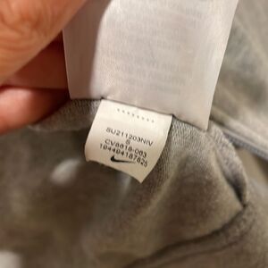 Nike woman’s gray zip up sweatshirt. But it doesn’t zip up