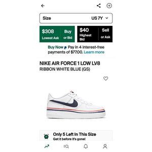 Nike women Air Force 1 low LV8 Ribbon White Shoes Size 8 GS 6.5Y