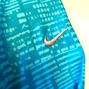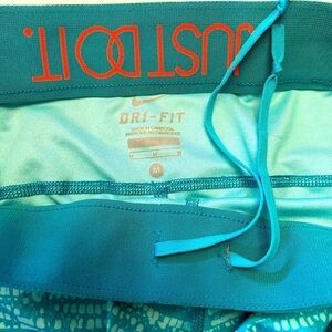 Nike Relay Legging in 92% polyester & 8% spandex. Waist band with draw string. Pre owned in great condition. Color is Teal with orange letters inside band.