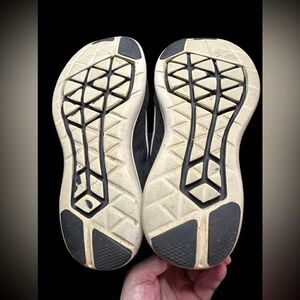 Nike women’s Flex Run size 7M black with white trim pre-owned cond very light, cool, and comfortable! Knit upper with Lightweight cushioning at the heel. Flex grooves in the outsole move naturally with your foot, from heel to toe. Less foam in the outsole allows for better flexibility and a light weight. These pics makes them look more worn than they are…I’ve tried different lighting and backgrounds 🤷♀️ They’re not faded but do have some normal wear.