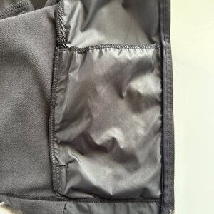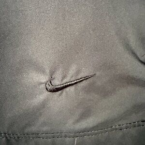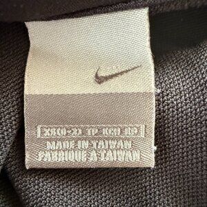 Women's Nike black long sleeve collared zip up athletic jacket, size XS 0-2. This has two front zippered pockets, two inside open pockets, and the sides and back are a stretchy material. Machine washable. This could also fit a XXS - please see measurements below. Excellent like new condition and from a smoke free pet free home. Quick shipper!