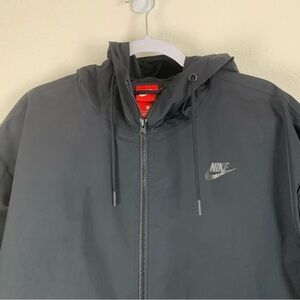Nike womens black packable waterproof hooded full zip shell jacket // has a pocket that turns into a cross body bag.
