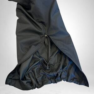 Drawstring around ankle for better fit. Zipper from ankle to mid calf. Mesh lined from waist to around knee. Draw string waist