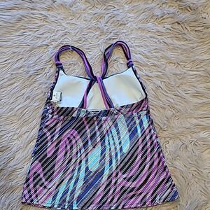 Nike women's purple, black and blue design tankini swimsuit top size 8