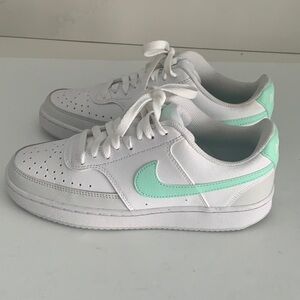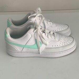 White with light green logo (mint color) Size 6 but run big for a 6. Good condition worn 2x show very little wear