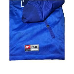 The Nike x AMBUSH Football Jacket in Deep Royal Blue is a stylish mid-length puffer jacket designed for men in size XL. Made with a durable nylon outer shell and cozy polyester lining, this jacket features a solid blue color with embroidered Nike logos and zipper accents. Perfect for football enthusiasts, this limited edition jacket offers both style and functionality with its full zip closure and insulated design, making it ideal for the winter and fall seasons. Representing a collaboration between Nike and AMBUSH, this jacket combines elements of hip hop culture and university themes in a unique and fashionable way.