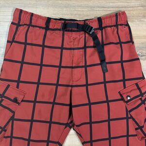Nike x Patta Men XL Mars Stone Cargo Pants Red Black Windowpane Plaid Streetwear
