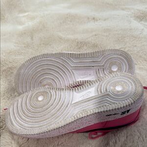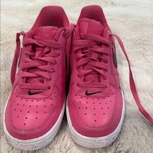 Vibrant custom pink Nike Air Force 1 with bold black swoosh. Classic design for everyday style. size 6