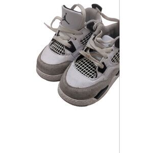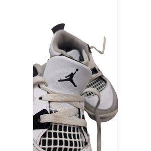 Introducing the Nike Air Jordan 4 IV Retro Military Black BQ7670-111 White Kids Shoes in size 7C. These stylish sneakers from Nike's Air product line are perfect for any Unisex Kid who loves athletic shoes. The shoe's upper material is made of high-quality leather and comes in a retro multicolor design that adds a touch of style to your child's wardrobe.