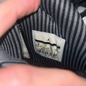 Nike Air Jordan 9 “Barons”, size 8 for sale. These shoes feature a great black and gray colorway and have a 45 on the heel, both tributes to Michael Jordan’s time playing baseball in Chicago. Shoes are worn with some tread worn down, but still flexible and can be worn. Measures 11.5 inches from the toe box to heel. Does NOT include original box.
