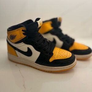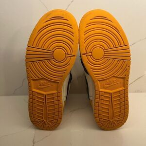 These Nike sneakers feature a striking black and orange colorway, perfect for making a statement. The high-top design offers a classic silhouette, while the premium leather construction ensures durability and style. Complete with a signature black Nike swoosh, these sneakers are a must-have for any footwear collection!