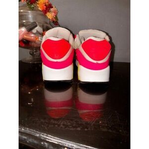 The Nike Air Max 90 ‘Watermelon’ celebrates the silhouette’s 30th anniversary with a vibrant color palette executed on a traditional build. The upper, constructed from white mesh with a matching white leather overlay, is enlivened with accents in contrasting Pink Blast and Ghost Green hues. A padded collar, along with a soft foam midsole with visible Max Air cushioning, combine to deliver a smooth and comfortable ride. Size 7