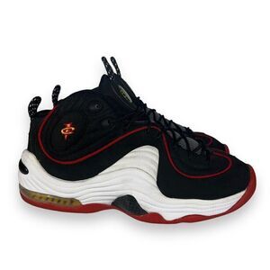 The Nike Air Penny 2 'Miami Heat' 2009 is a classic basketball shoe that combines style and performance. Originally released in 1996, this iconic sneaker was re-released in 2009 with a striking Miami Heat colorway. The shoe features a leather upper with patent leather overlays, a visible Air-Sole unit in the heel, and a rubber outsole with herringbone pattern for superior traction on the court.