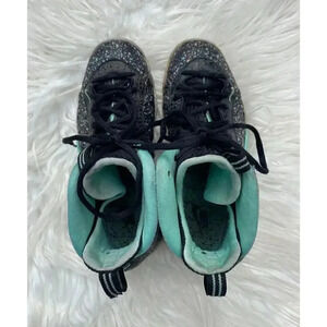 The Nike Little Posite One "Easter" is a festive colorway of the iconic basketball sneaker. The upper is constructed of a black Foamposite shell covered in a pastel-colored Safari print. Black Safari print is also featured on the eyestay and heel. The Nike Little Posite One "Easter" is completed with a black mesh bootie.