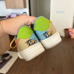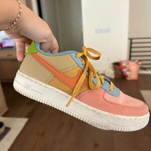 These are air force low Sun Club. They are a 5Y(about 7 in women’s) they are in excellent condition, no toe creases, with barely any tread on the sole. Going for $112 on StockX, as they’re retired