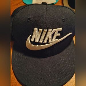 Stylish black cap with iconic Nike logo. Perfect for casual wear.