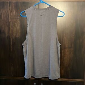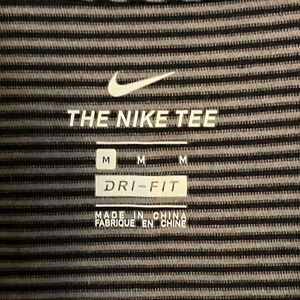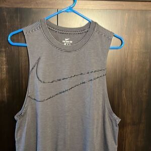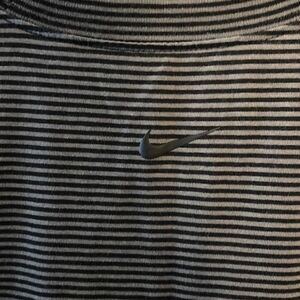 This top is made by Nike. It’s a black and gray striped sleeveless with a big swish sign on the front. Size medium and in very nice pre owned condition. Smoke and pet free home.