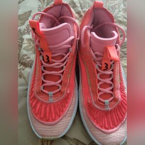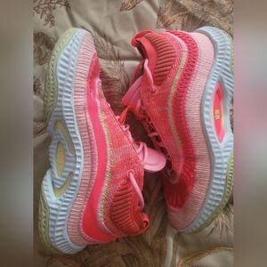 Dynamic Nike athletic shoes. Pink and white design. Ideal for sports. like new condition. men's size 12, women's 13.5.