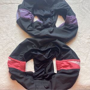 Nike Dri Fit Running Shorts Bundle Of 2 Size Small. Great used condition. Elastic waist with hidden drawstring. Underlying panty. Purple and black and pink and black colors. Purple shorts have a few very small snags on back as shown in pictures. Measures waist 26”, inseam 3.5”, rise 9”. Price includes both pairs.