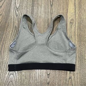 Nike Dri-Fit Womens Sports Bra Racerback Swoosh Logo Print Pullover Gray Size S