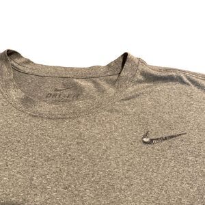 Nike Drifit Men’s Grey Swoosh Athletic T-Shirt Size L. Very good preowned condition. See small stains on front approximate measurements armpit armpit 21 1/2 inches length 27 1/2 inches.
