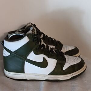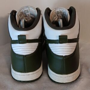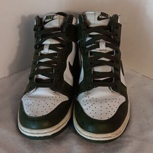 These unisex spartan green leather high top Nike "Dunk" youth athlete shoes are a size Y6. Cushioned insoles for comfort. In excellent condition. All offers are welcome.