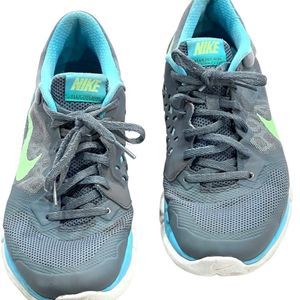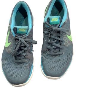 Nike Flex 2015 Run in Gray & Turquoise Blue with Neon Green Accent Size 8.5