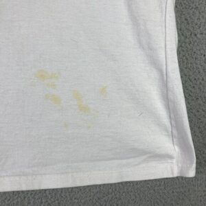 There are yellow stains on the front of this shirt, as seen in the photos.