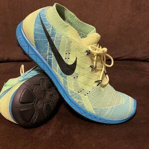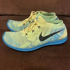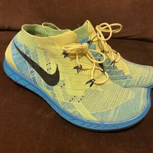 Nike Free Flyknit 3.0 636232-700 Volt Electric Lime Green Blue 9.5 US 43 EUR
