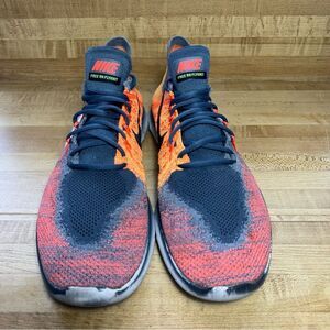 Nike Free RN Flyknit 2017 Men's Size 13 Running Shoes Orange Grey 880843-401 good condition no rips or tears in the mesh.