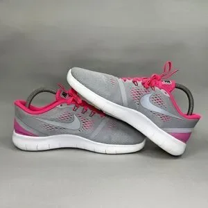 Nike Free RN Running Shoes Girls 7 Grey Pink Athletic Run Training Sneakers
