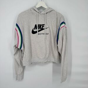 Nike Gray Hoodie Long-Sleeved Graphic Pull-Over Hoodie Medium