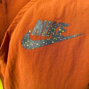 Nike Icon CJ2291 Clash Romper Orange and Lemon Venom zip front romper with deep cargo pockets. Lightweight and durable nylon windbreaker fabric Colourful contrast front zip adds a vibrant touch Cargo pockets deliver a utility-look Regular fit Material composition: 100% Nylon Laying flat measures 30.5 inches top to bottom with a 3 inch inseam. 15 inches from urn pit to armpit when fully zipped and 16 inches straight across the waist.