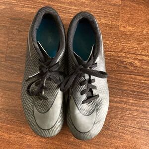 Nike kids soccer cleats, black and Gray, lace up, slight wear on cleats otherwise in good condition