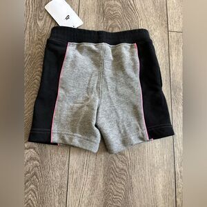 Comfortable Nike shorts in black and gray. Features a pink logo. Ideal for active kids.