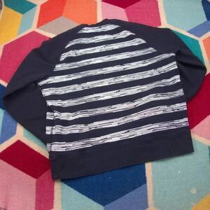 Nike Men's Black and White Striped Crewneck Sweatshirt Size L 22.5 x 25