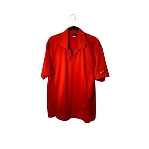 Nike men’s golf red short sleeve mesh, athletic performance polo shirt, size medium pit to pit 21 inches length 29 inches