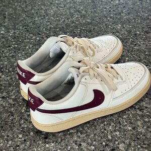 Nike Men's size 8 Cream and Maroon Sneakers court vision low next nature sneaker