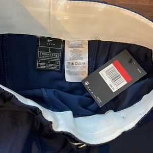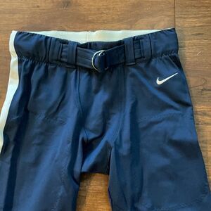 Brand new with tags. These Nike men’s football pants feature the Nike logo as well as a white stripe down the side of the pant. They are padded at the knee and have breathable panels on the rear of the legs.