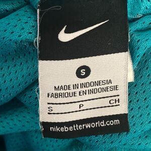 Nike Men’s Swim Trunks sz S. Features black, turquoise, bright orange striped lightweight quick dry fabric (100% polyester), mesh lining, elasticized waistband with colorful tie, fully functional front mesh lined pockets, longer fit. Gently worn and laundered with light fading/wash wear but no flaws to note.