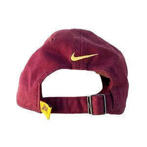 Keywords: Nike, baseball cap, maroon, adjustable strapback, embroidered logo, curved brim, University of Minnesota, Golden Gophers, casual, spring, unisex, adults, sports, cotton, pre-owned.