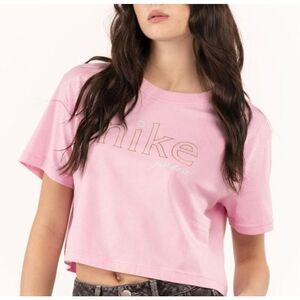Nike Pink Cropped Cotton Tee With Teal and Gold Writing Size Small