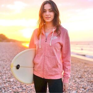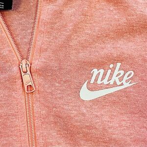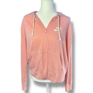 Barely worn, like new! Experience comfort and style with the Nike Pink Sweatshirt Hoodie, featuring a soft pink hue and a relaxed fit. This classic top is crafted from lightweight sweatshirt material, perfect for casual wear or athletic activities. The full-length front zipper adds convenience, making it an ideal choice for layering in any season.