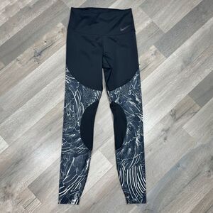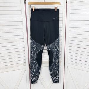Nike Power Gym Flutter Feathers Print Leggings Black Grey Womens Small