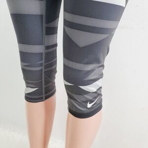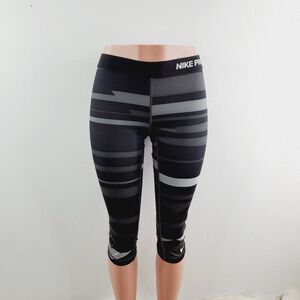 Nike Pro Womens Black White Striped Dri Fit Activewear Capri Pants Size Medium